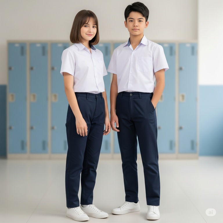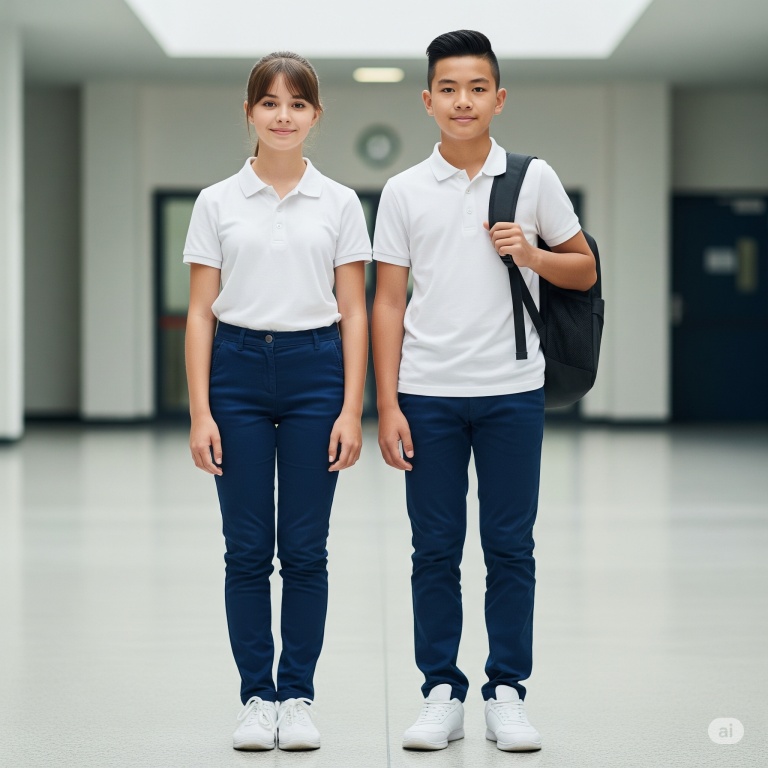LACİVERT PANTOLON, BEYAZ GÖMLEK YA DA YAZISIZ BEYAZ POLO TİŞÖRT ŞEKLİNDE OLACAKTIR.